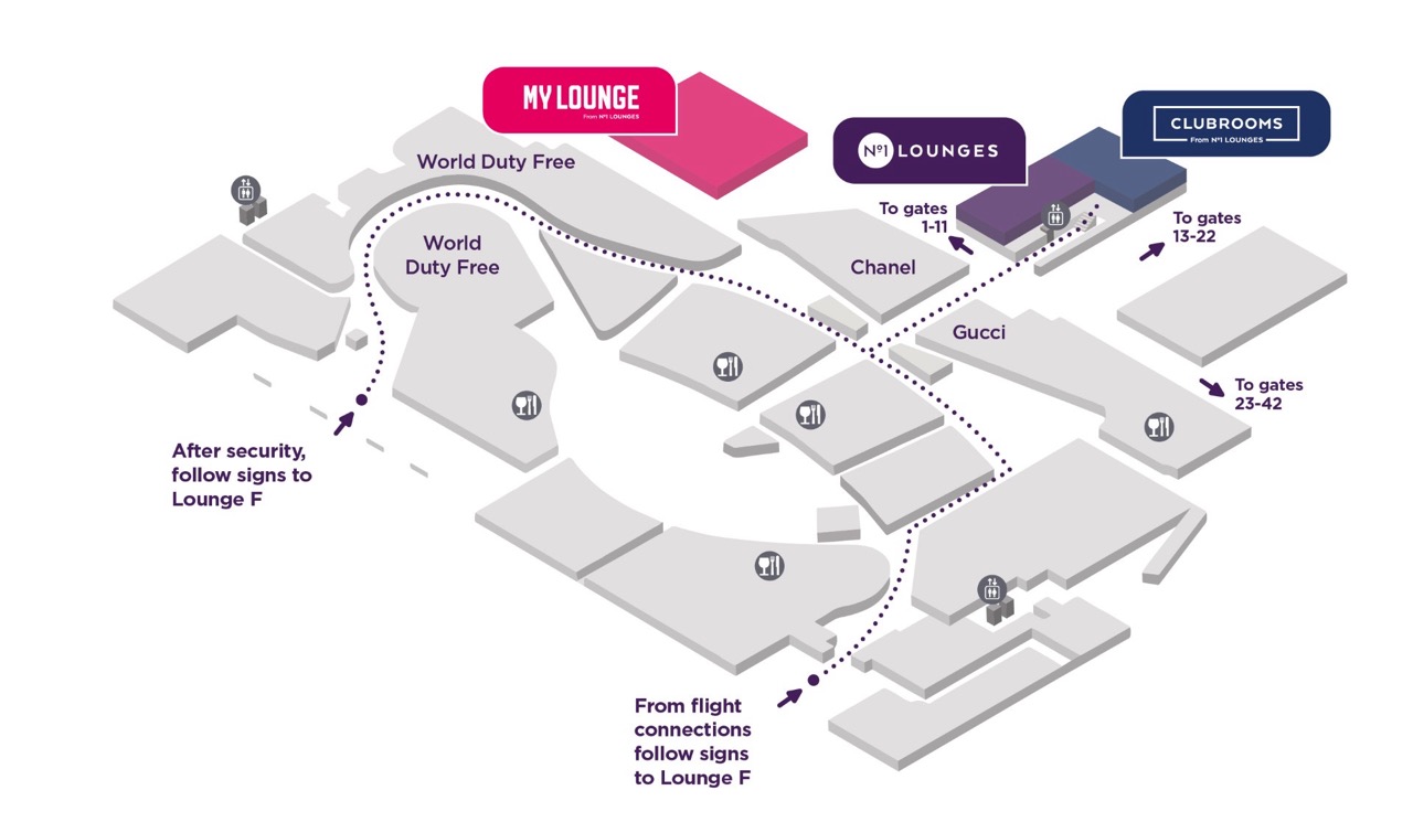 Terminal 3International DepartureLevel 1Airside - After passport control and security check, follow the walkway to the left of the duty free shop and follow signs for 'Airport Lounges' and 'Gates 13 - 22'. The lounge is located on level 1 and is accessible via lifts or stairs.