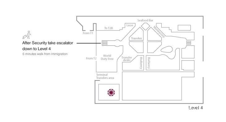 Terminal 2International DepartureLevel 4Airside - After passport control and security check, follow signs for 'A3 Lounge'.