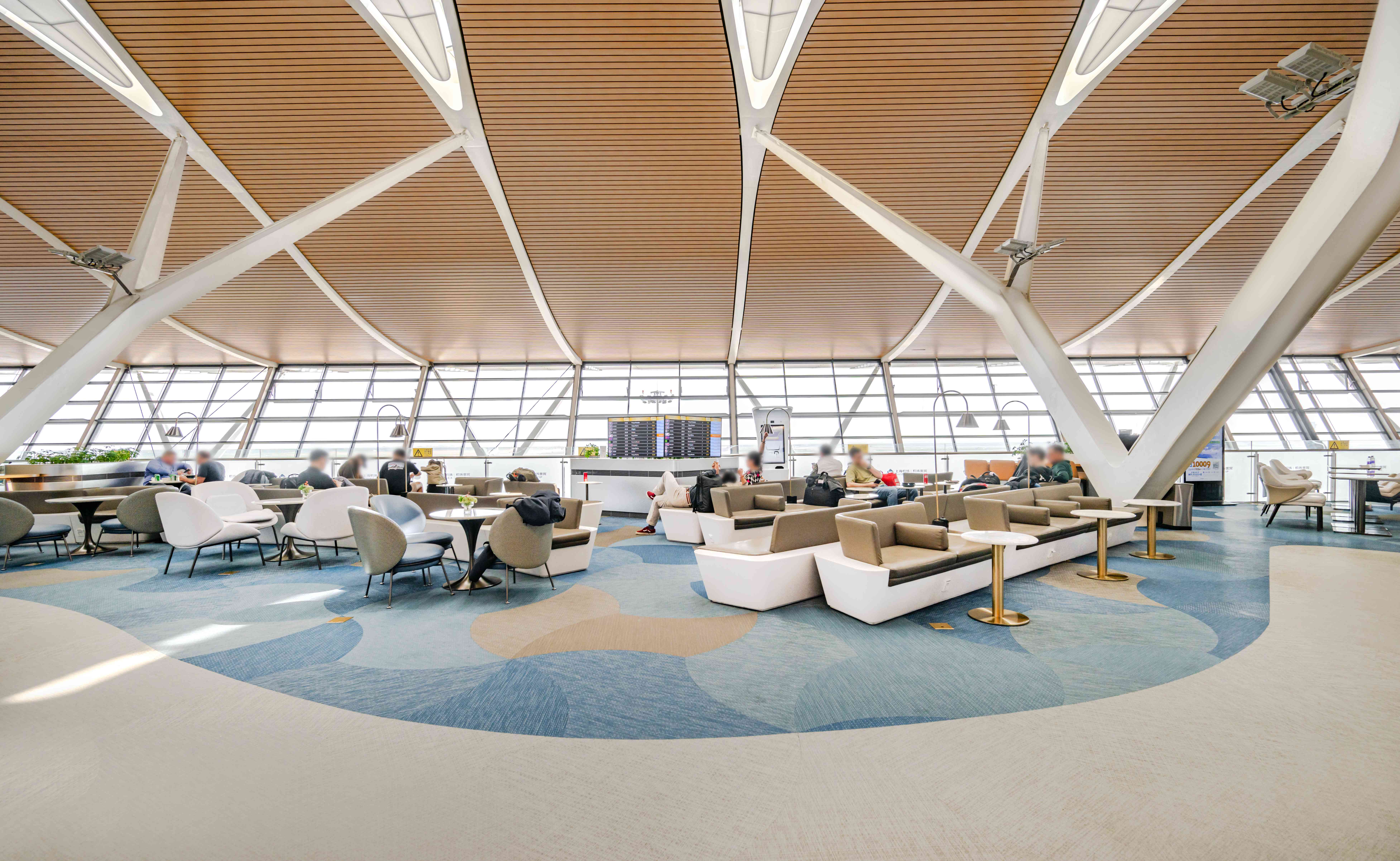 Terminal 2International DepartureAirside - After passport control and security check, near Gate 69 on the Upper Floor. Signs indicate the entrance to the Lounge.