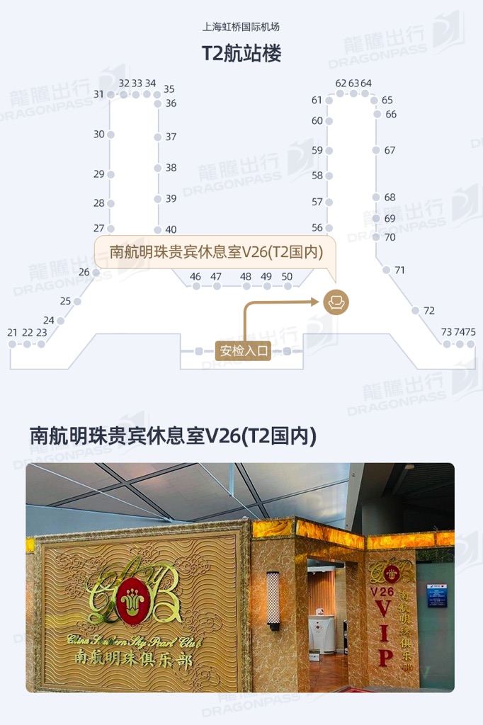 Terminal 2Domestic Departure3FAirside - After passport control and security check,go straight south (to the right) to the VIP lounge V26. This lounge is only available for passengers taking China Southern domestic flights.