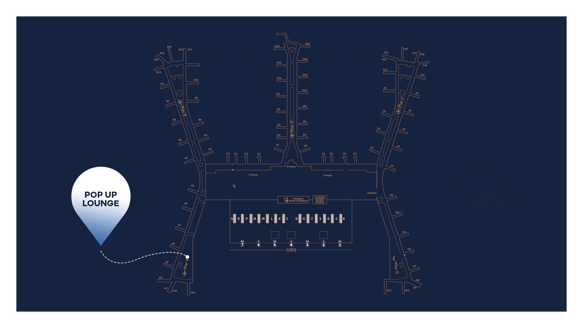 International TerminalInternational DepartureDeparture Level Near Boarding Gate: A6Airside - After passport control and security check, the lounge is located next to Gate A6.